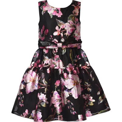 Kids' Floral Print Party Dress In Black
