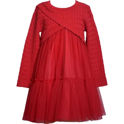 Kids' Mixed Media Long Sleeve Dress In Red
