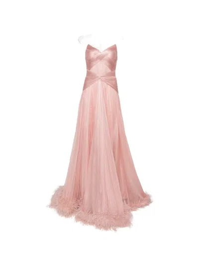 Luna Sweetheart-neck Metallic Maxi Dress In Pink