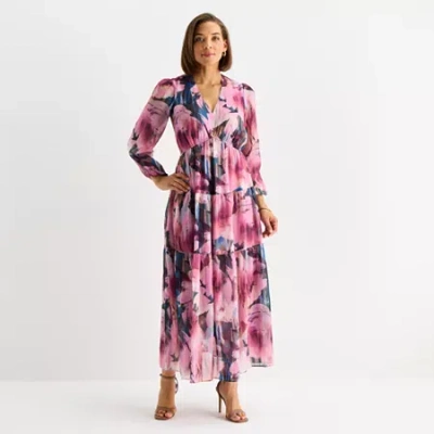 Womens Long Sleeve Floral Maxi Dress In Multi