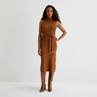 Womens Sleeveless Striped Midi Sweater Dress In Black