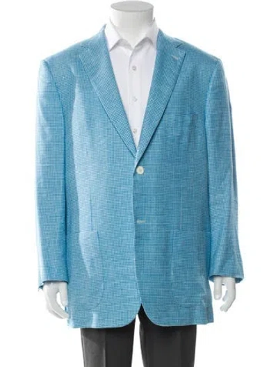 Pre-owned Cashmere Plaid Print Jacket In Blue