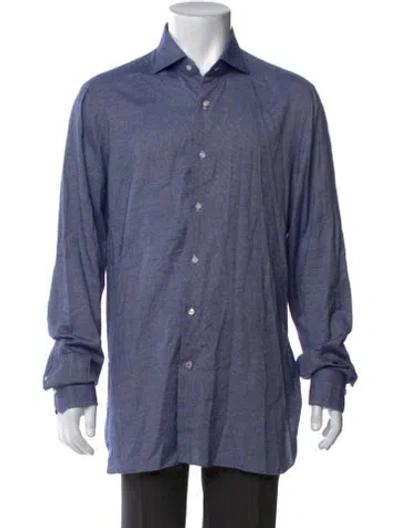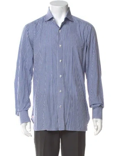 Pre-owned Plaid Print Long Sleeve Dress Shirt In Blue