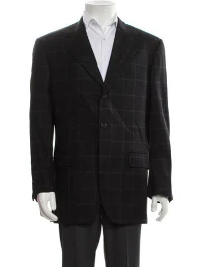 Pre-owned Wool Plaid Print Two-piece Blazer In Gray
