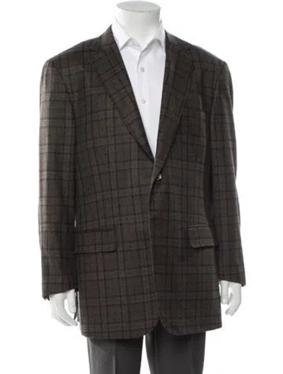 Pre-owned Cashmere Plaid Print Blazer In Neutral