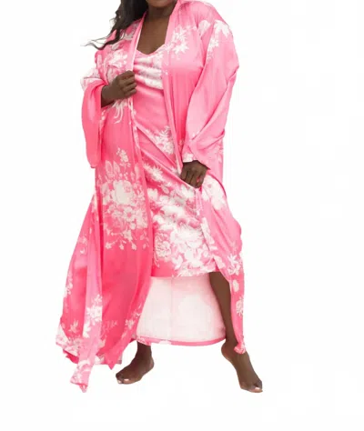 Floral Midi Slip Dress - Plus In Pink And White In Multi