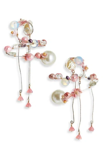 Caged Faux Pearl Drop Clip-on Earrings In Pearly Pink