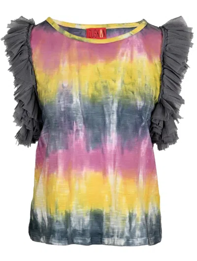 Ibiza Tulle T-shirt Tie Dye Sunrise | Scoop Neck Hand Dyed Cotton Tee | Soft Tulle Sleeves | Womens