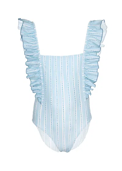 Kids' Girl Swimsuit Stripes Blue