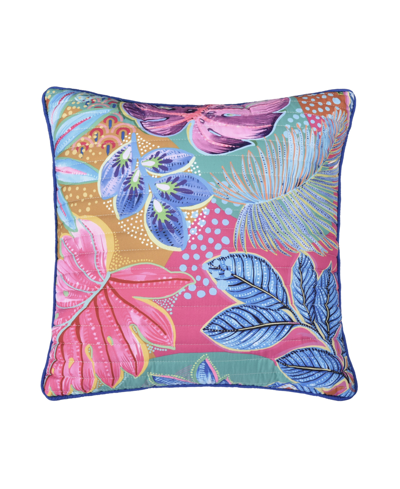Jules Wildflower Quilted Decorative Pillow, 18" X 18" In Turquoise