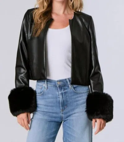 Faux Leather Cardigan Jacket With Fur Cuffs In Black