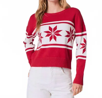 Snowflake Crewneck Sweater In Red In White