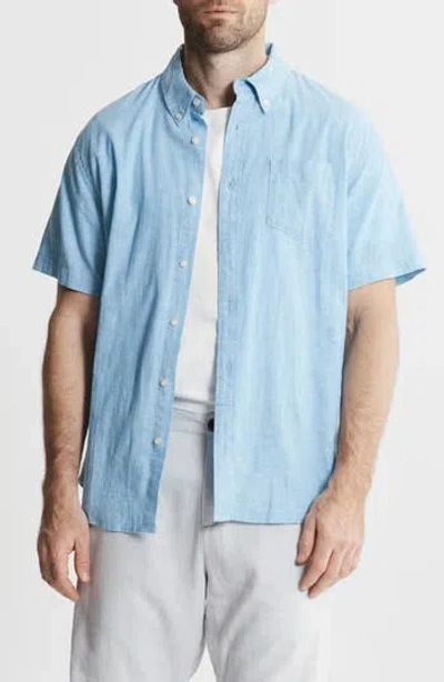 Linen & Cotton Blend Short Sleeve Button-up Shirt In Light Blue