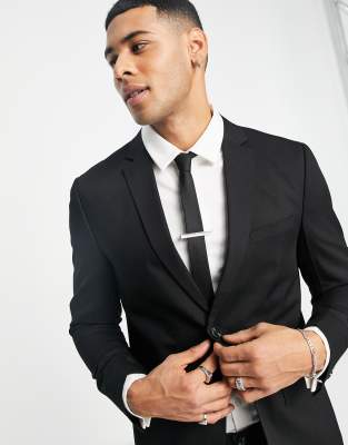 Premium Super Slim Fit Stretch Wool Mix Suit Jacket In Black