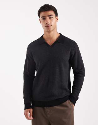 Knit Long Sleeve Textured Polo In Beige-neutral