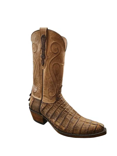 Pre-owned Men's Black Western Boots Sueded Caiman Exotics Scgc7166-v4 In Brown