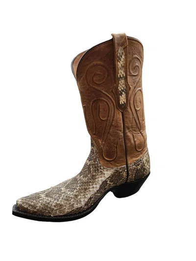 Pre-owned Men's Black Western Rattlesnake Exotic Boots Wnt618-54 In Brown