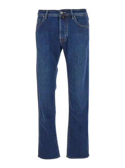 Indigo Blue Denim Jeans With Classic Design In Blau