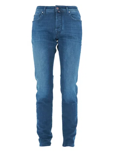 Indigo Blue Denim Jeans With Classic Design In Blau