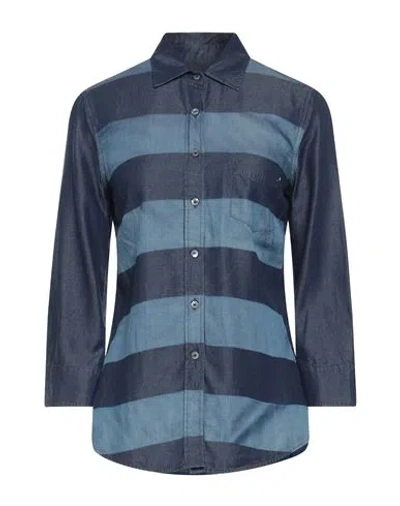Woman Denim Shirt Blue Size M Cotton, Lyocell