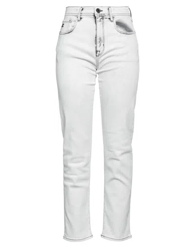 Woman Jeans White Size 28 Cotton, Elastane