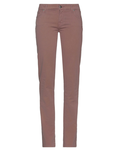 Woman Pants Mauve Size 25 Cotton, Elastomultiester In Purple