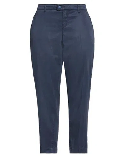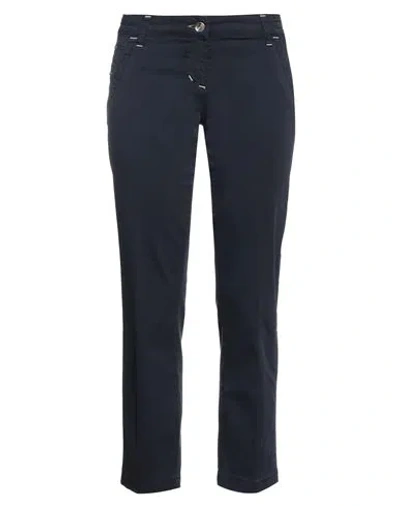 Woman Pants Navy Size 32 Cotton, Elastane In Navy Blue