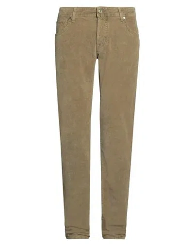 Man Pants Camel Size 35 Cotton, Elastane, Polyester In Green