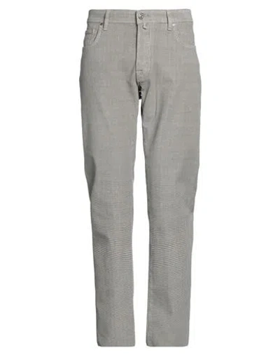Man Pants Grey Size 35 Cotton, Elastane, Polyester In Gray