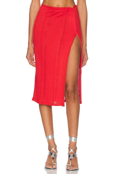 Side Slit Midi Skirt In Red