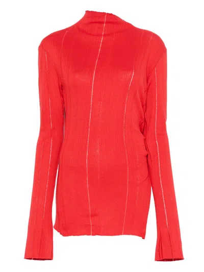 Slit-detail Knitted Top In Red
