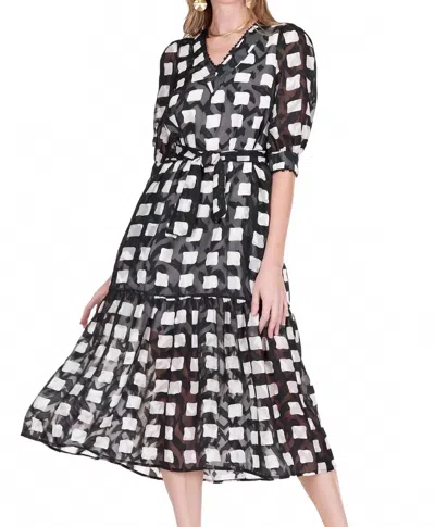 Trimmed V-neck Maxi Dress In Checkerboard In Black