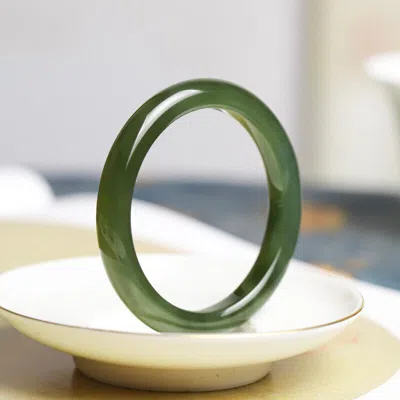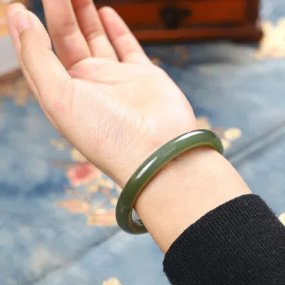 Pre-owned Certified Nature Grade A Icy Lake Green Hetian Ite Bracelet Bangle 56mm