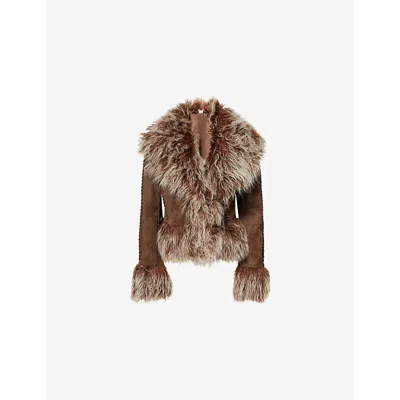 Womens Blonde Mendoza Hooded Regular-fit Faux-fur Jacket