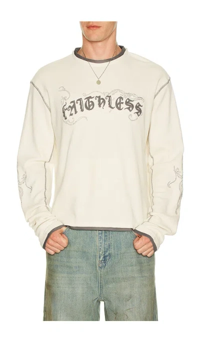 Faithless Rib Cross Applique Long Sleeve Tee In White