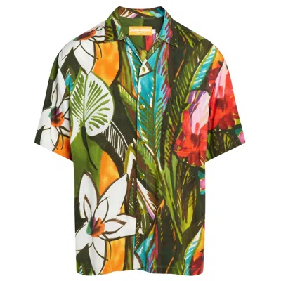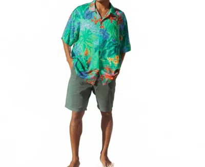 Men's Retro Button Down Shirt In Sea Flower In Green