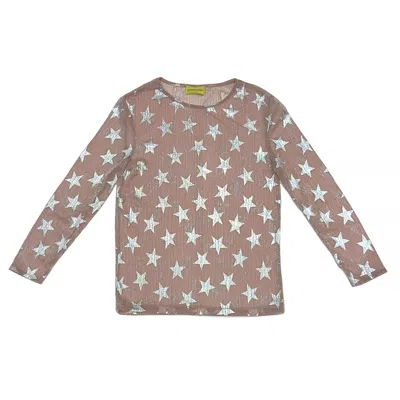 Women's Pink / Purple / Gold Pink Shimmering Mesh U-neck Long-sleeve Stretch Top In Pink/purple/gold