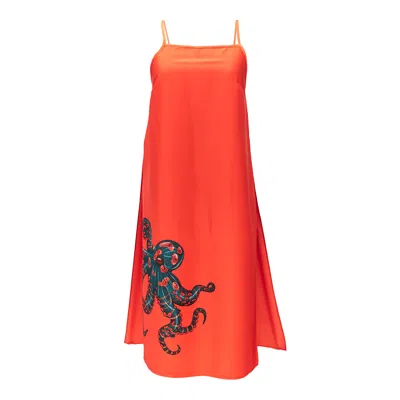 Women's Yellow / Orange Fire Orange Octopus Print Satin Cami Top In Yellow/orange