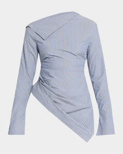 Asymmetric Pinstripe Button-sleeve Blouse In Blue