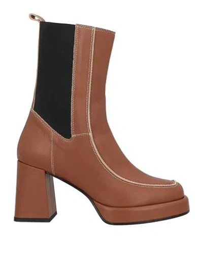 Woman Ankle Boots Beige Size 10 Leather In Brown