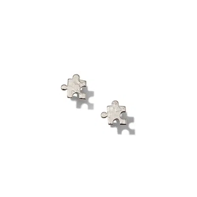 Women's Silver Puzzle Piece Textured Stud Earrings