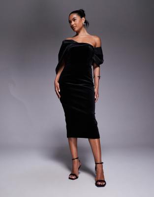 Structured Asymmetric Off Shoulder Maxi Dress In Black