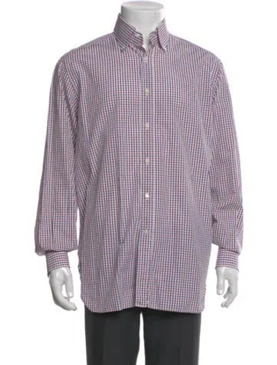 Pre-owned Plaid Print Long Sleeve Dress Shirt In Purple