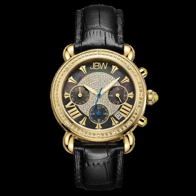 Pre-owned J6284a Diamond Accented Leather Strap Stainless Steel Men's Watch Great Gift