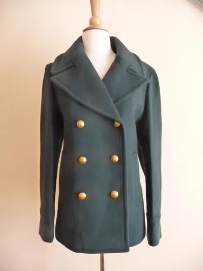 Pre-owned J.crew Majesty Peacoat In Stadium Cloth, F4923, Sz12, Dark Forest, $298 In Green