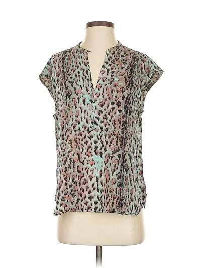 Pre-owned 3/4 Sleeve Silk Top Green Boatneck Tops