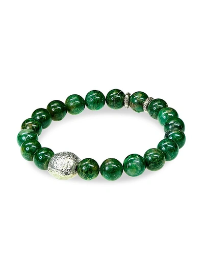 Men's Sterling Silver & African Jade Beaded Bracelet