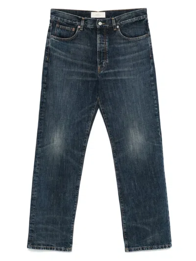 Stretch Organic-cotton Tapered-leg Jeans In Blue