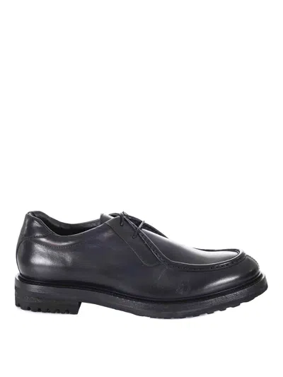 Man Lace-up Shoes Navy Size 9 Leather In Black