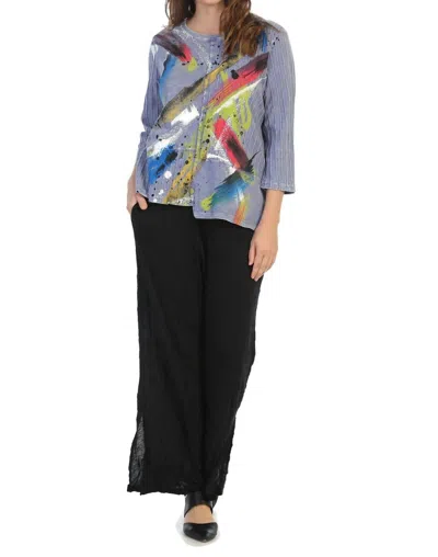 Chit Chat Mineral Washed Cotton Top With Linen Contrast In Blue
